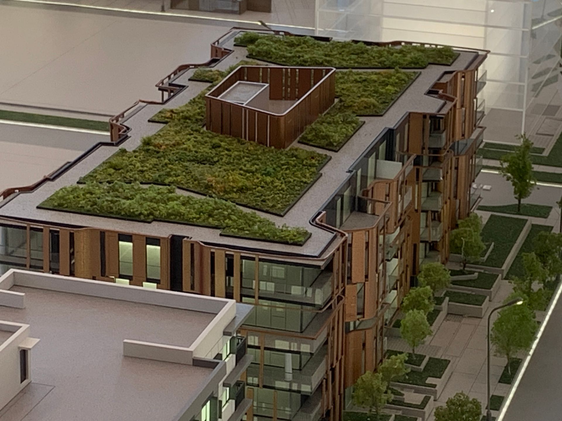Building Type: 6 storey concrete midrise with a stunning curvilinear form designed by local architect Arno Matisto protecting existing maple trees on the site and soften the streetscape.