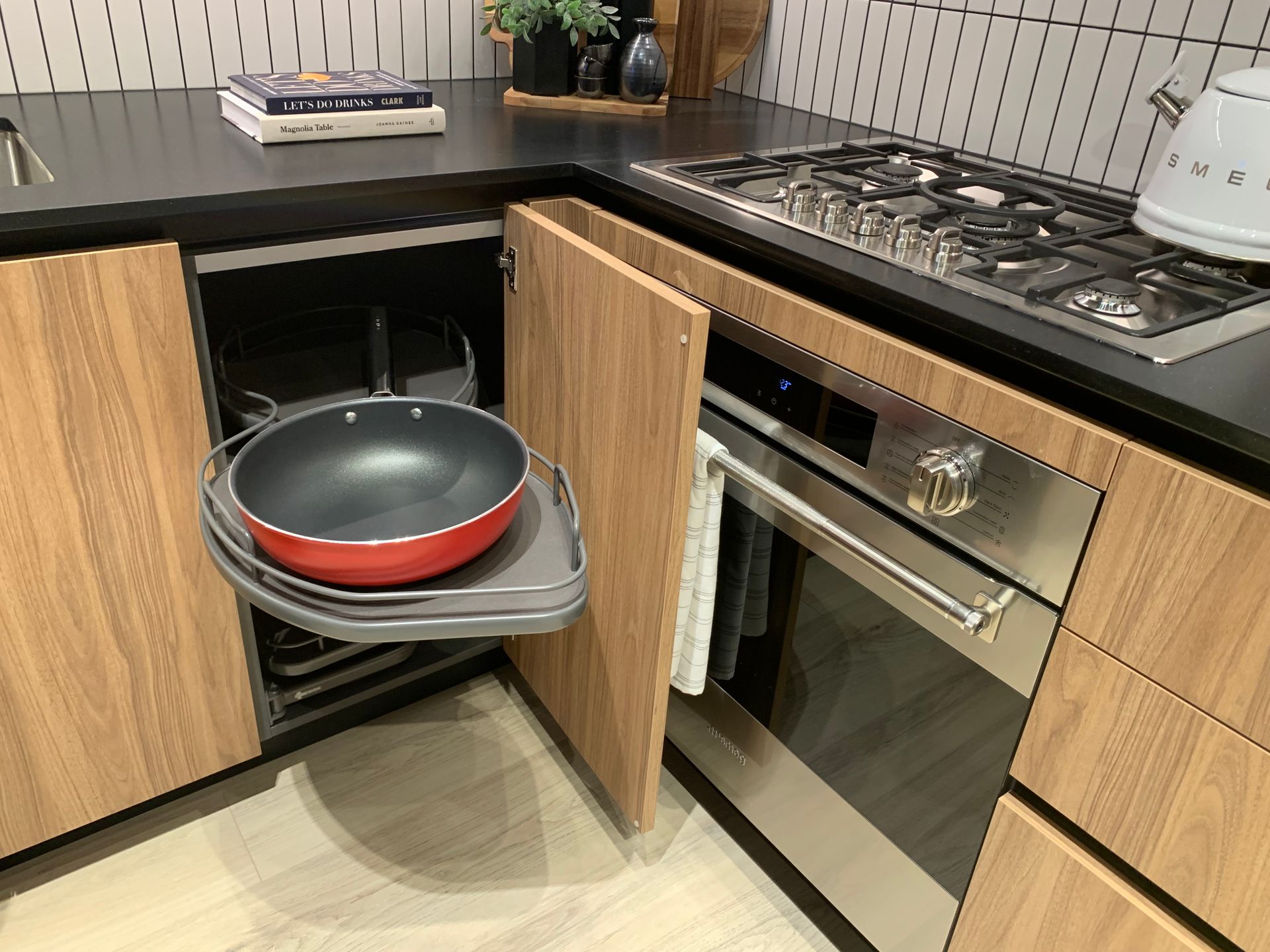 - Corner pull-out trays in most large kitchens