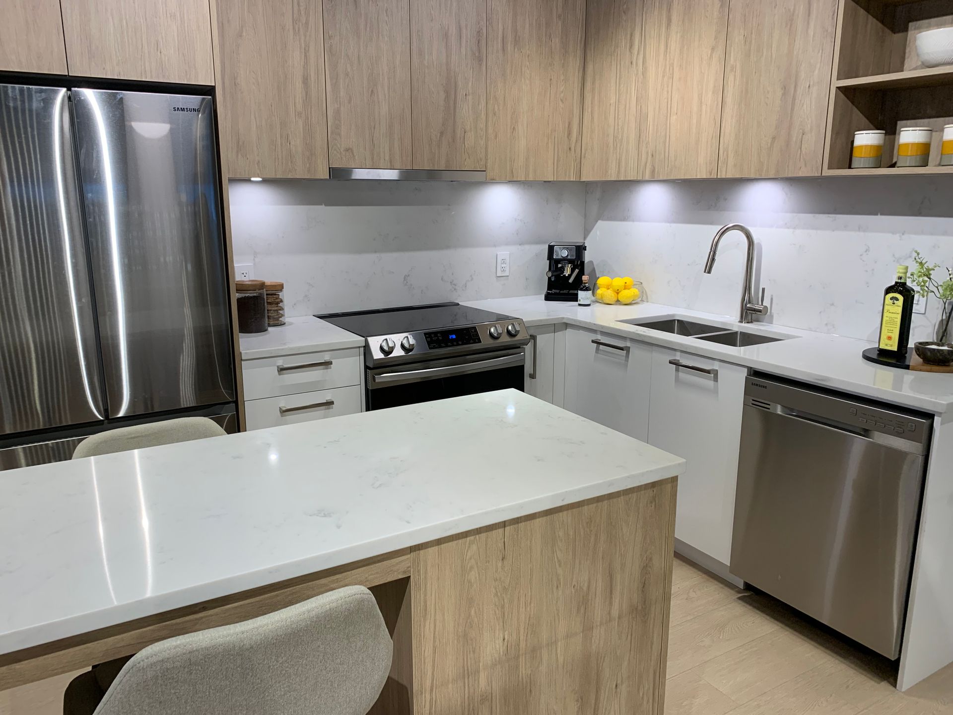 Features: Full sized Samsung appliances in all homes; quartz slab backsplash; laminate throughout; 9ft ceilings; heat pump based AC unit in living area included.