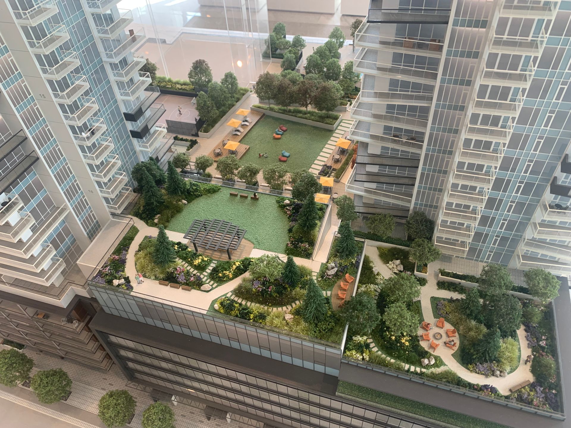 Building Type: 3 high-rise towers (22, 45 and 50 storeys) with a top a 6-storey podium and a 8-level parkade. 17,000 sf retail space; 46,520 sf office space; 90,000+ sf of amenity space; 8,500 sf daycare.