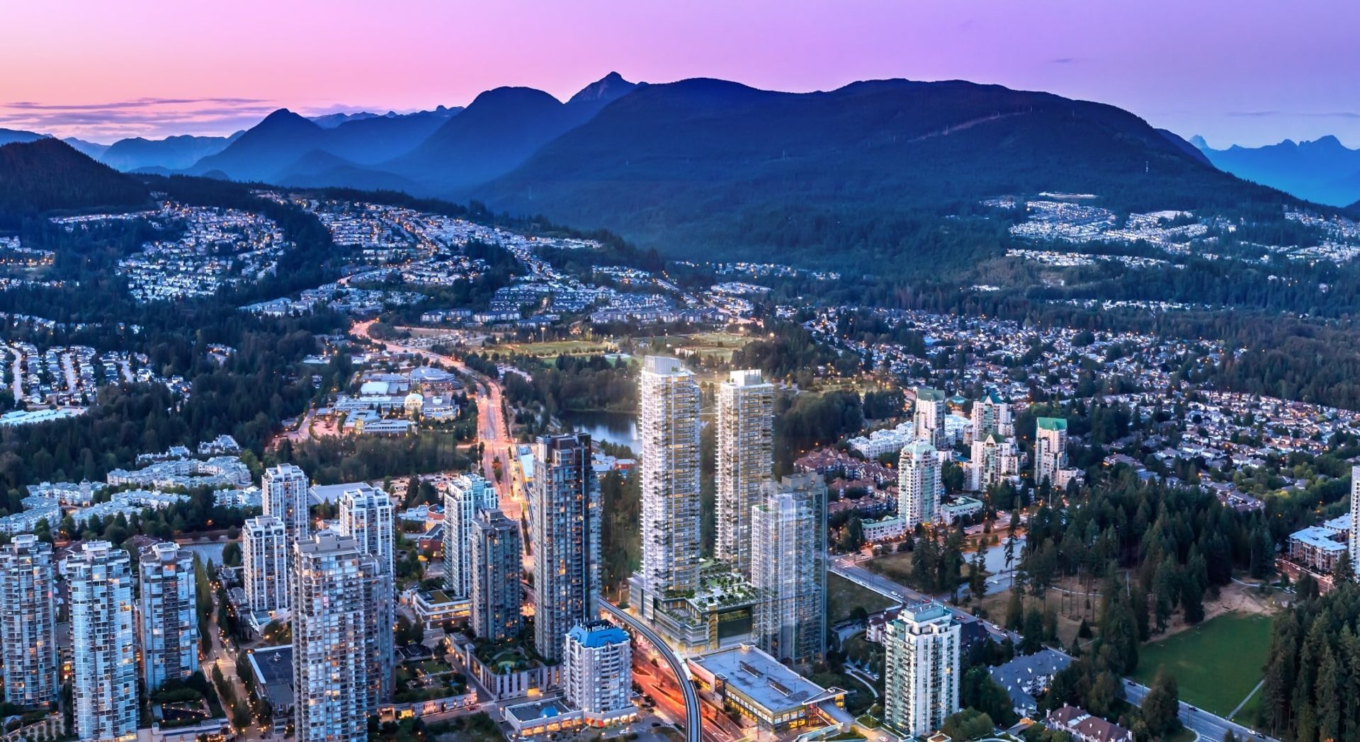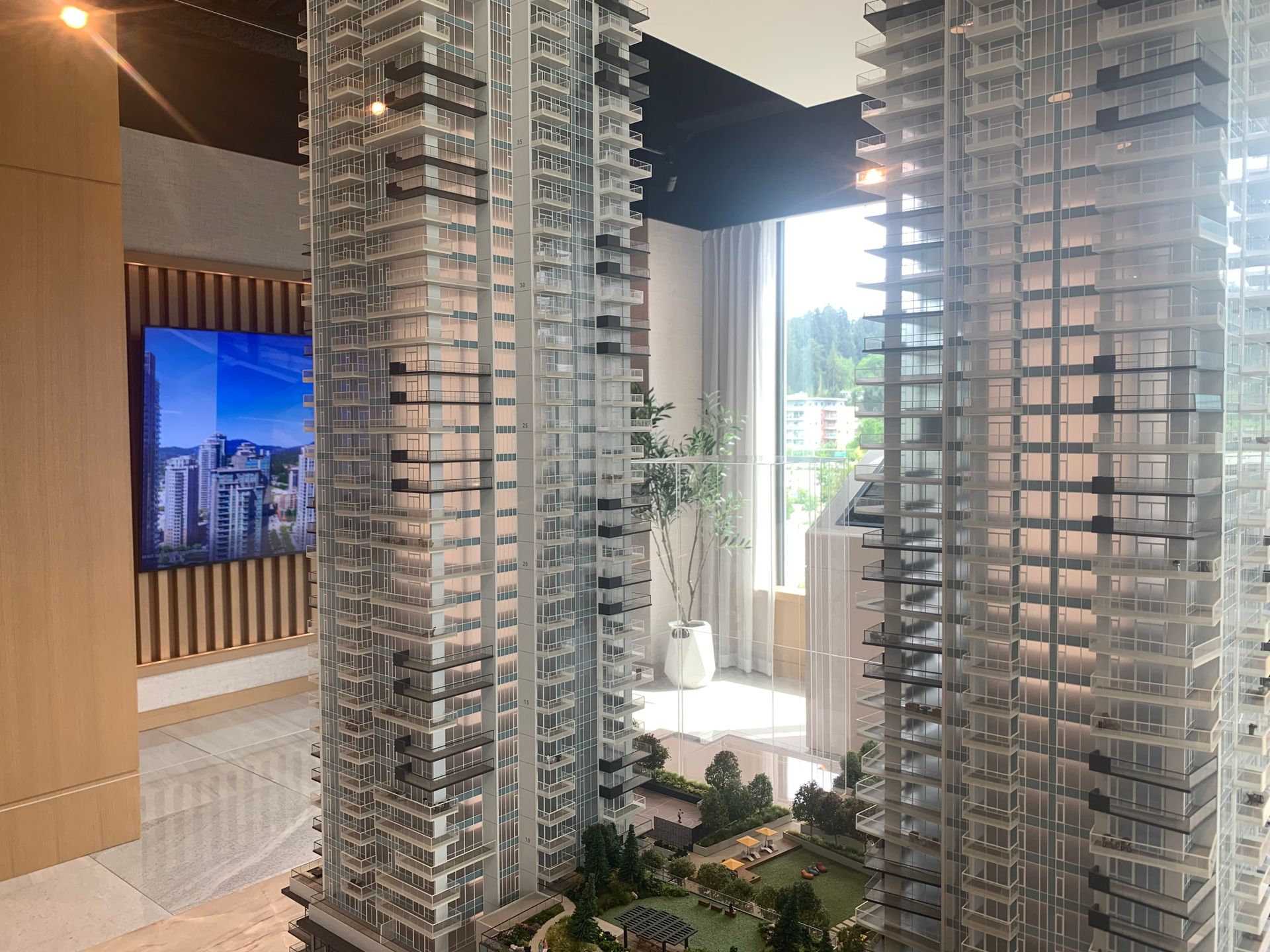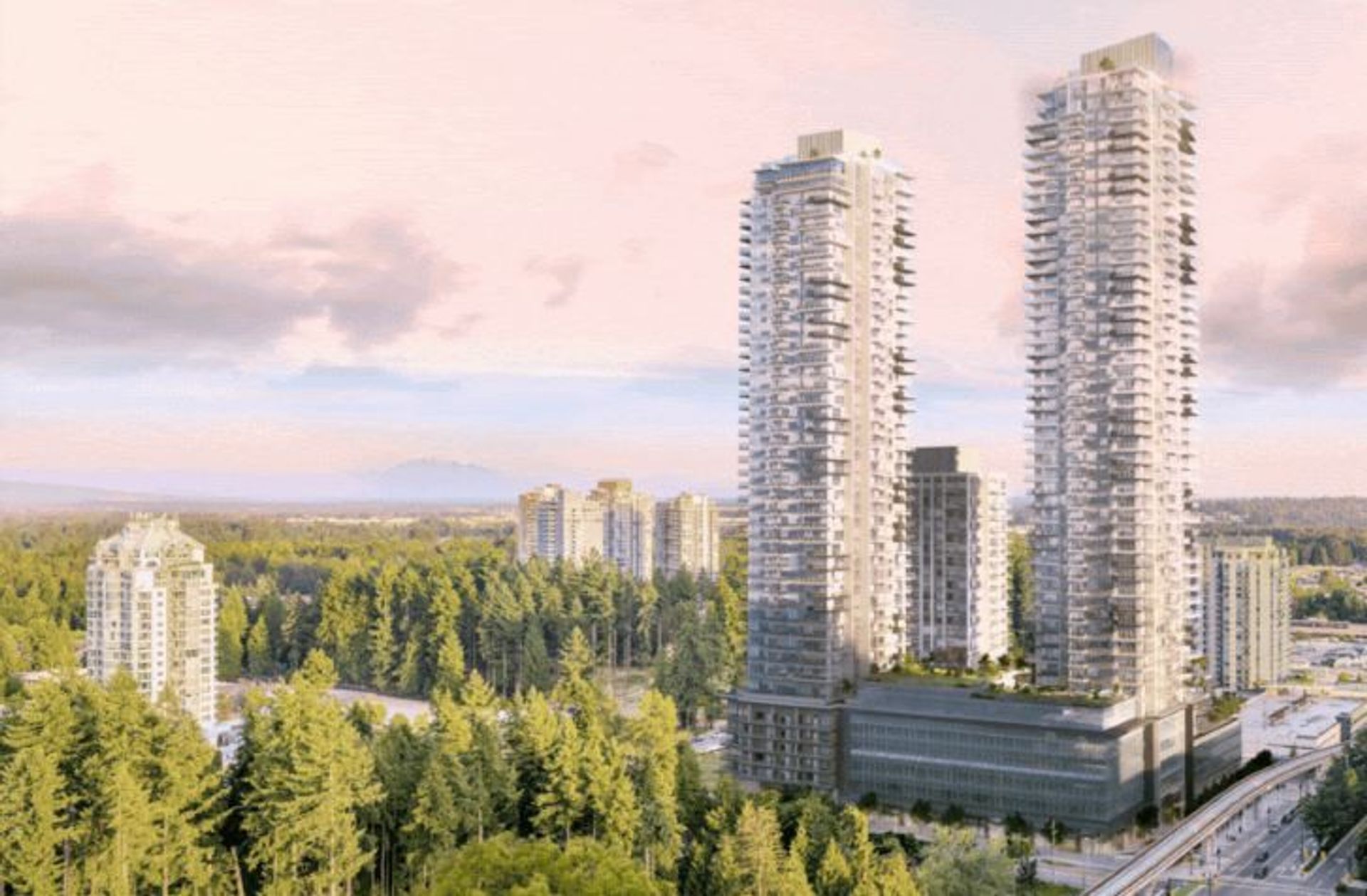 Pine and Glen is a huge new development featuring 3 high-rise towers a top a 6-storey podium and a 8-level parkade in Coquitlam City Centre. There will be 705 condominiums available in a 45-storey tower and a 50-storey tower, while a 22-storey tower will provide market rental apartments.