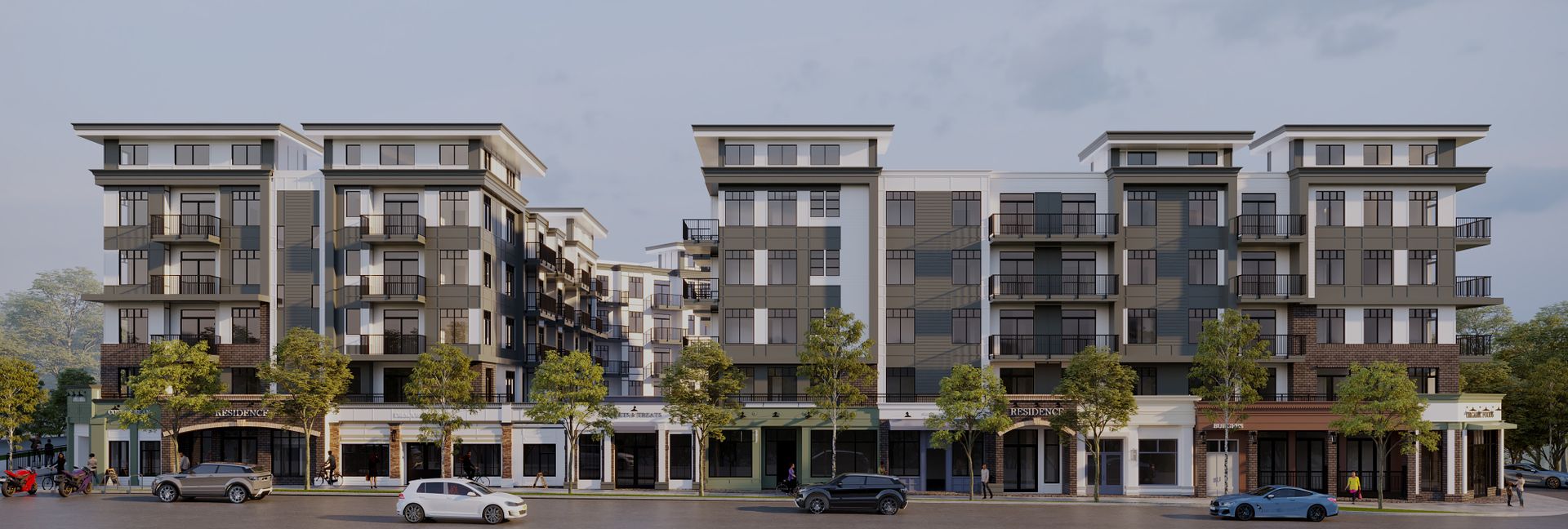 Building Type: Two 6 storey woodframe, mix use buildings with commercial units on the ground level and 5 floors of residential condos. The architecture is designed to complement the building in Abbotsford's historical Downtown core and the design features classical brick details and horizontal cornices.