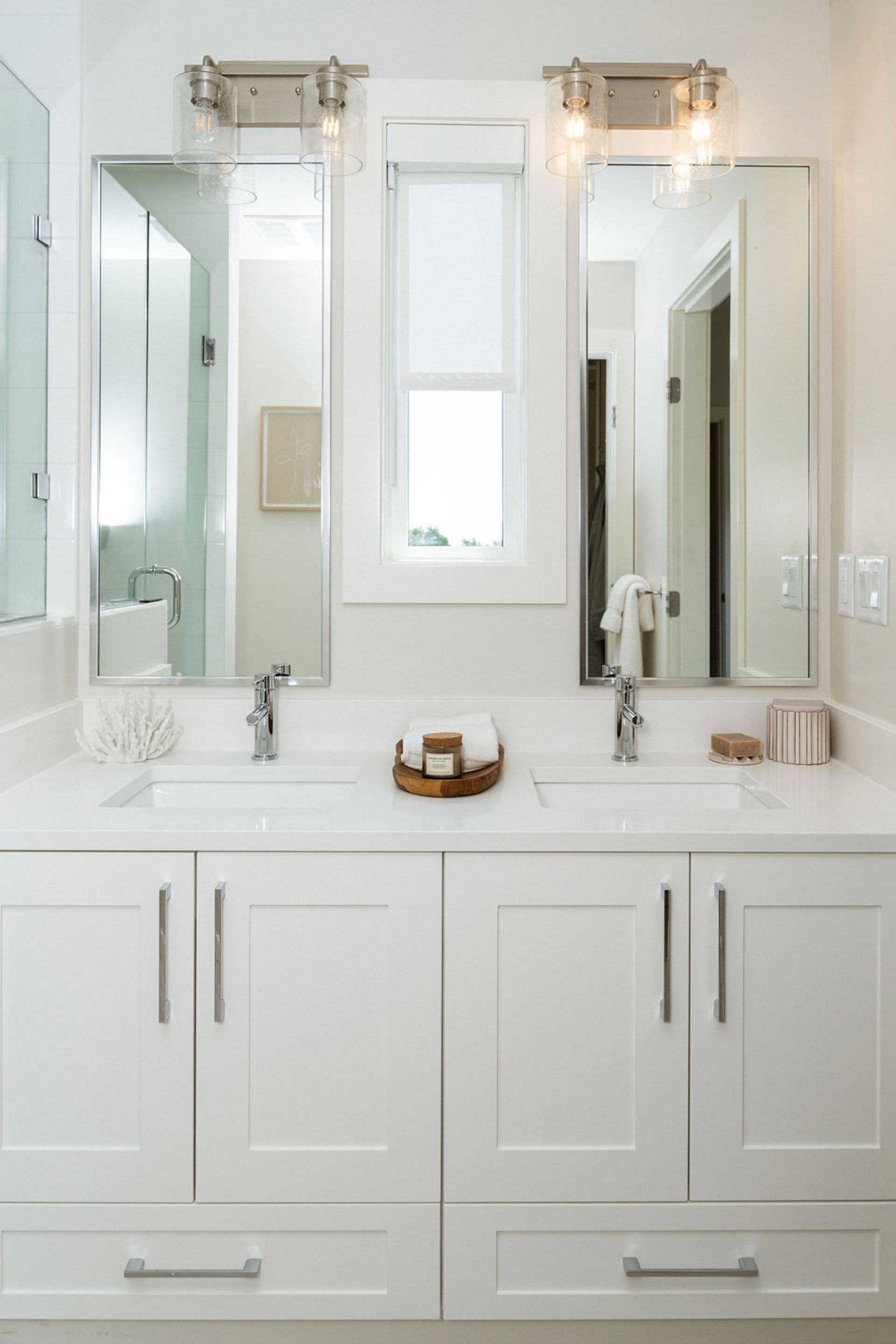 - Undermount sink in en suite and powder room; top-mount sink in main bath