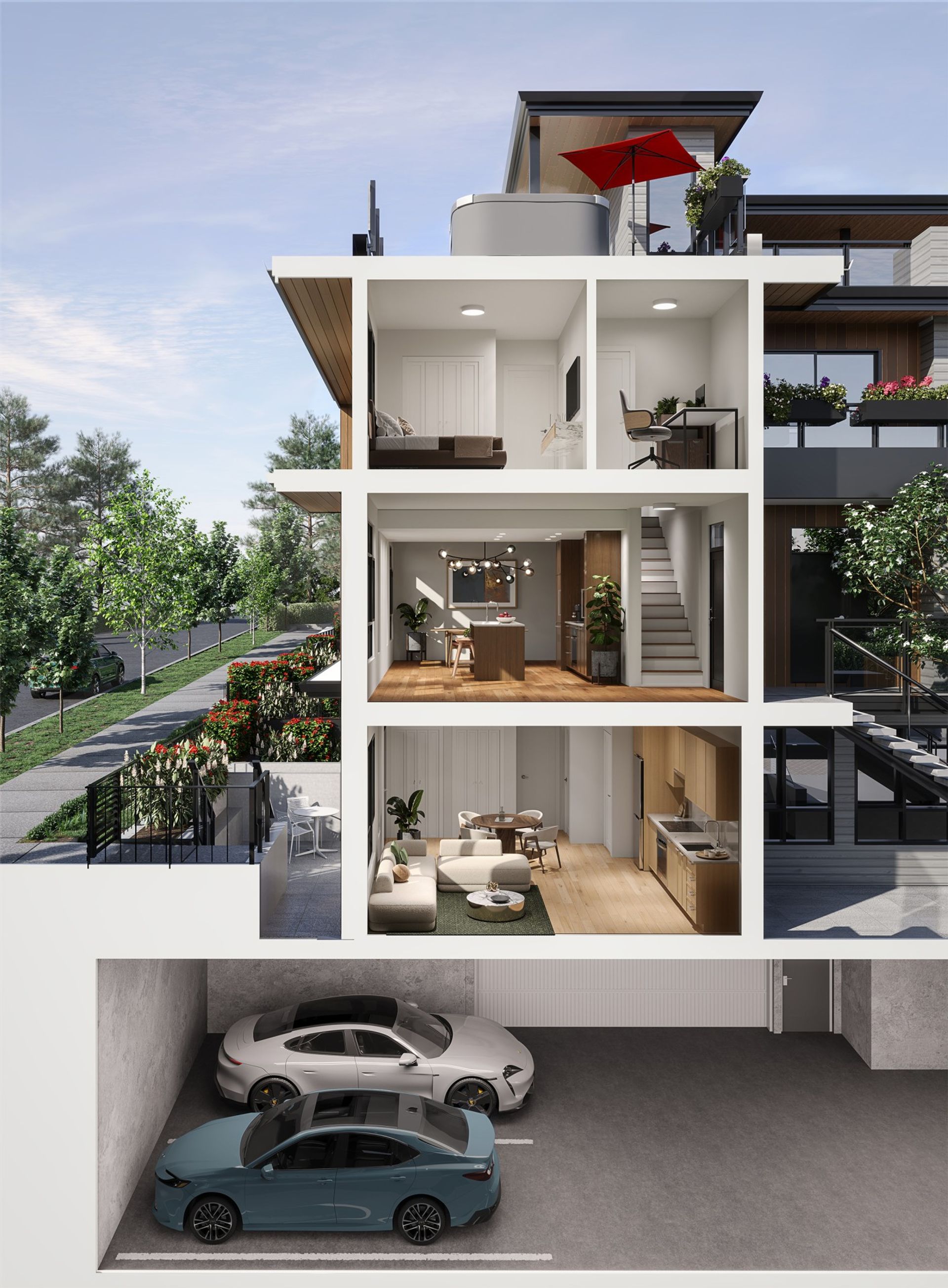 Building Type: 3 storey, stacked townhouse development with underground parkade