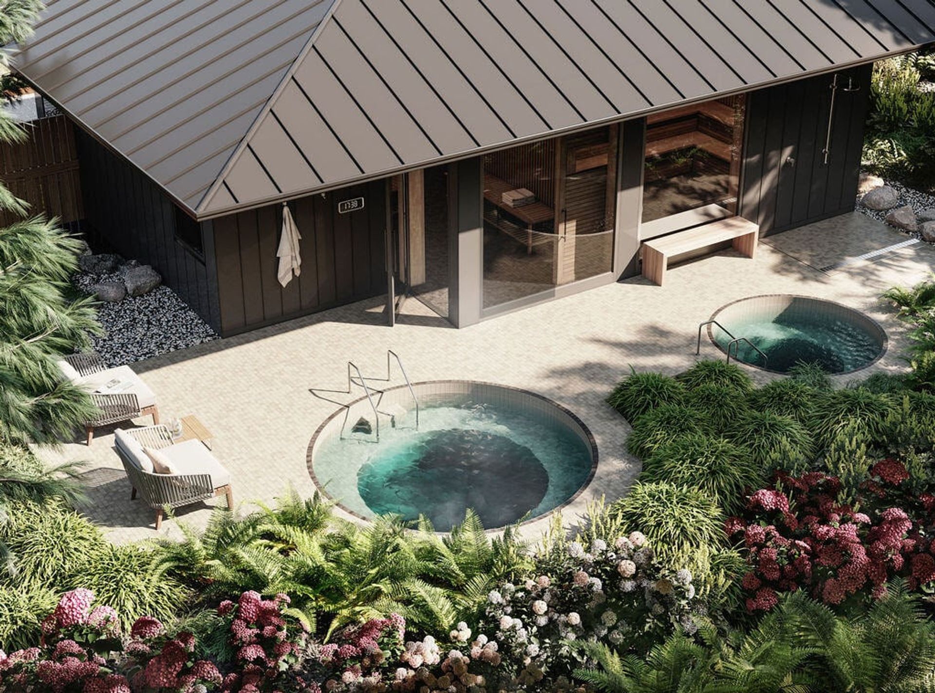 - Wellness pavilion with sauna, steam room, hot and cold plunge pools