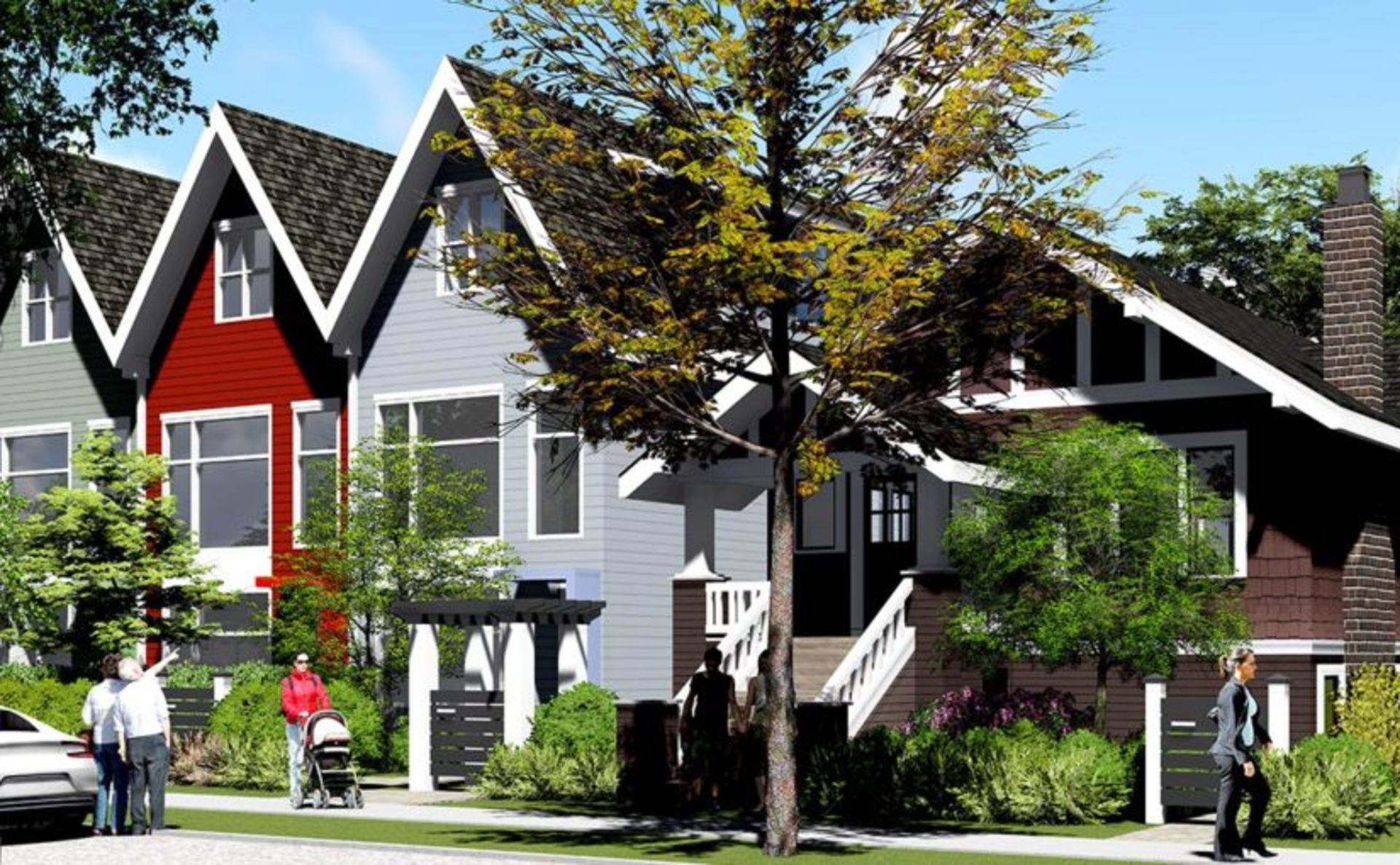 This new townhouse development in Kensington - Cedar Cottage includes nine rowhouses and conversion of a heritage home into two stacked duplexes. Located on a beautiful tree lined street in the Kensington neighbourhood of East Vancouver.