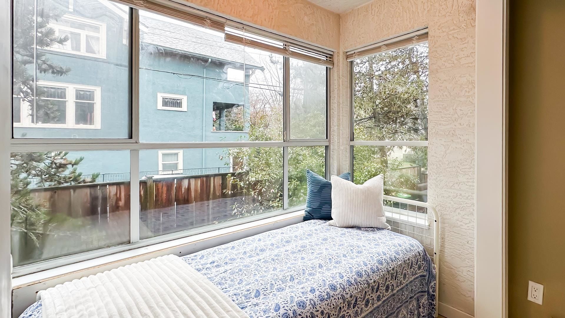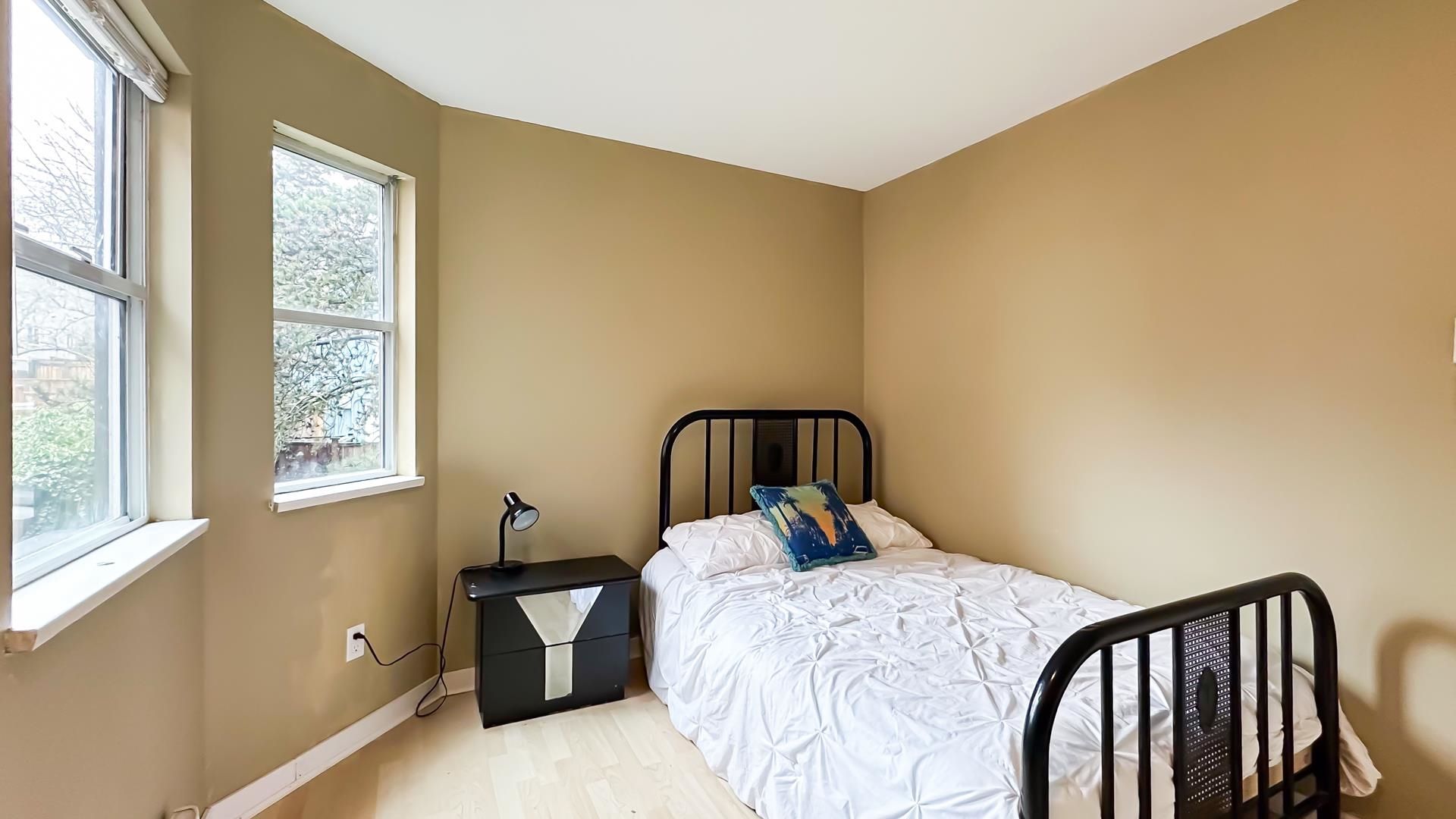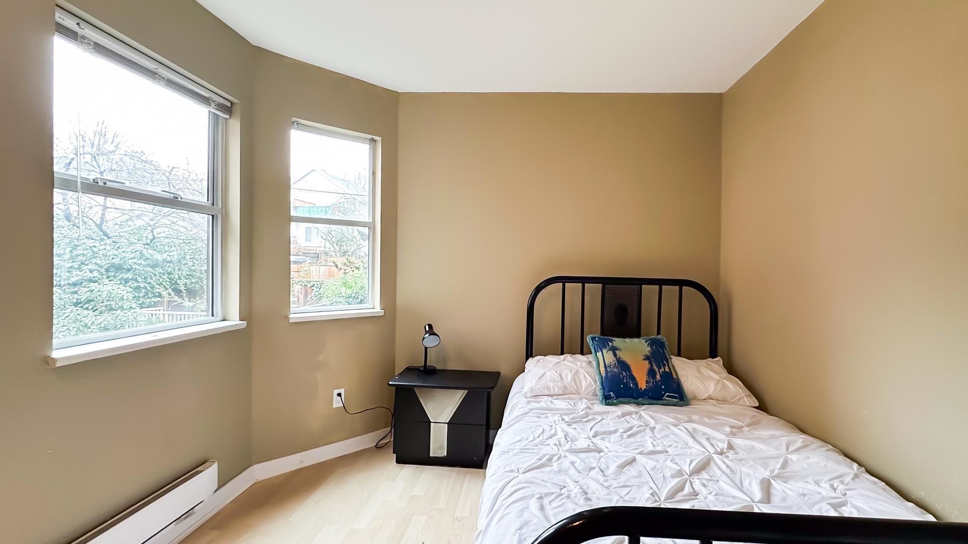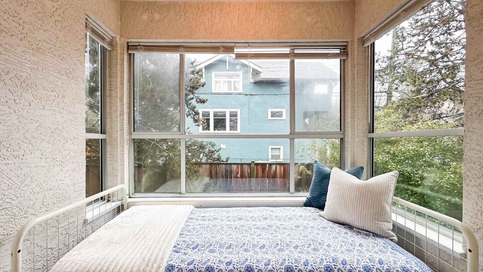 Corner 1-bed + den unit with bright open layout, gas fireplace and enclosed balcony that can serve as a bedroom or extra storage. Spacious living room, insuite laundry and plenty of interior storage. Located in a well-kept, quiet building just steps to transit and minutes to everything Hastings has to offer. Excellent access to transit makes commuting easy to SFU Burnaby, BCIT (Burnaby or Downtown) or UBC (Downtown). 10 Minutes drive to downtown. Only 1 block from Pandora Off-Leash Dog Park and close to shops, services and community amenities. Perfect for first-time buyers or investors. Open House Saturday and Sunday February 14+15 2PM-4PM