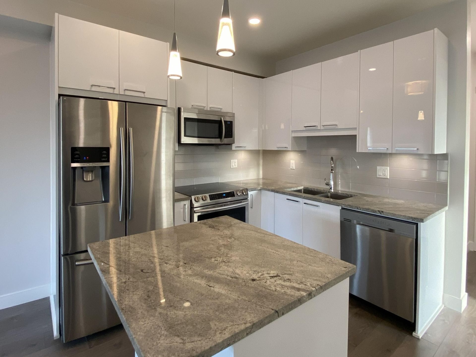 Experience comfort and convenience in this stunning 2 Bed PLUS Den, 2 Bath quiet corner suite at The Georgia—just steps from the future SkyTrain! Freshly painted and filled with natural light, this home offers 9' ceilings, an open-concept design, and quality finishes throughout, including granite countertops & stainless steel appliances. The flexible den is ideal for a home office, guest room, or creative workspace. The generous primary bedroom features a walk-in closet, A/C, & a spa-inspired ensuite with double sinks. Tucked away from busy streets, this suite delivers a serene living environment without sacrificing convenience. This pet-friendly building includes 1 parking stall, 1 locker/bike storage & EV charging. Perfect as a place to call home or a smart investment opportunity!